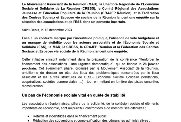 A la suite du Comité Stratégique Guid'Asso du 3 juillet 2024 réunissant Région, Département, CAF, Cress, AMDR, Drajes et Le Mouvement Associatif de La Réunion,…